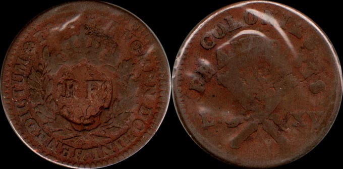 | надчеканка "RF"на 12 динерах 1767 Французские колонии, С#4 |