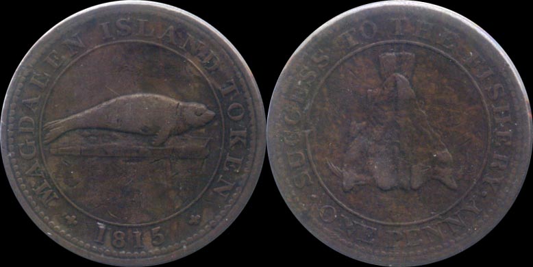 | аверс - тюлень, реверс - разделанная туша тюленя |